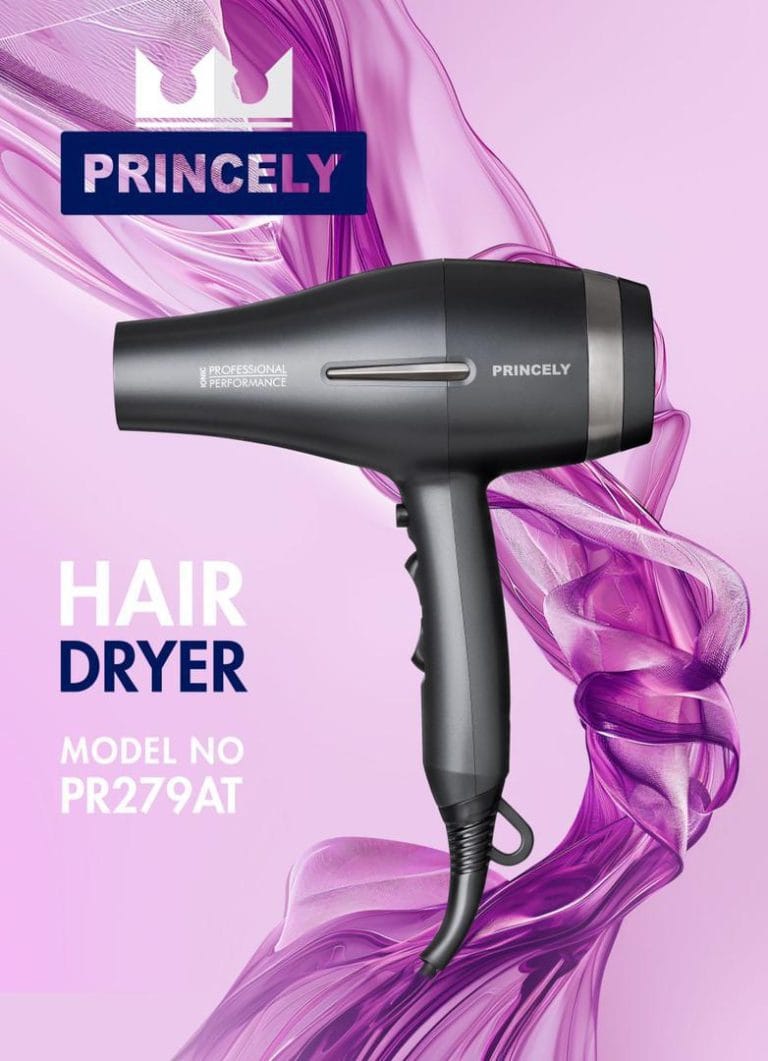 سشوارهای حرفهای پرنسلی: این سشوارها به داشتن موتورهای قدرتمند AC مشهور هستند که طول عمر و قدرت پرتاب باد بیشتری دارند. بسیاری از مدلها مجهز به فناوری تولید یون (Ionic Technology) هستند که با خنثی کردن الکتریسیته ساکن، به کاهش وز و افزایش درخشندگی مو کمک میکند. دکمه باد سرد (Cool Shot) و تنظیمات مختلف دما و سرعت نیز آنها را برای استفاده خانگی و سالنی مناسب کرده است.