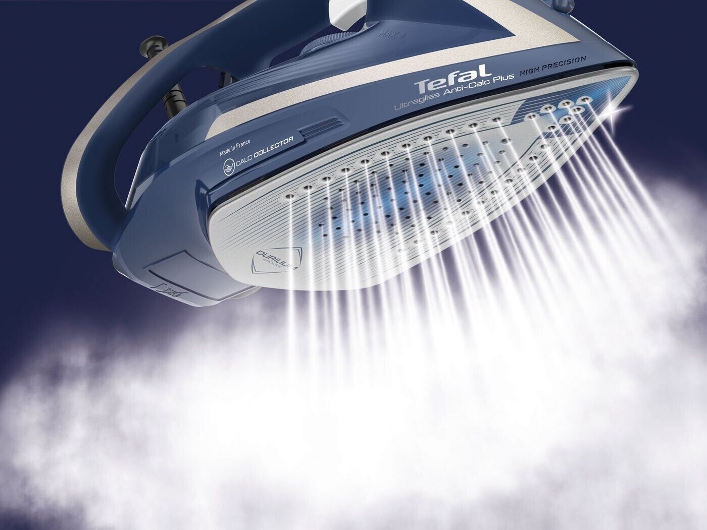 کفی سرامیکی Durilium اختصاصی تفال، حرکت فوقالعاده روانی روی انواع پارچه دارد و علاوه بر پخش یکنواخت بخار، از برقافتادگی یا سوختگی لباس جلوگیری میکند. وجود سیستم ضدچکه مانع نشت آب در دماهای پایین شده و لباسها را از ایجاد لکه محافظت میکند.