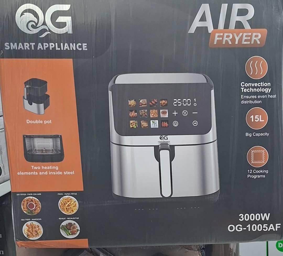سرخکن برند OG مدل OG-1005AF یکی از دستگاههای حرفهای و مدرن در دسته لوازم خانگی هوشمند است که با محفظه دوگانه (Double Pot)، دو المنت حرارتی قدرتمند و داخلی استیل، امکان پخت سریع، سالم و یکنواخت انواع غذاها را فراهم میکند. ظرفیت بزرگ ۱۵ لیتری در کنار فناوری همرفت (Convection Technology) آن را به یکی از بهترین انتخابها برای آشپزخانههای خانگی و حرفهای تبدیل کرده است.