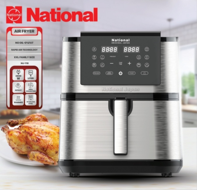 سرخکن بدون روغن ناسیونال مدل MJ-118 ساخت ژاپن (Original Japan) بوده و با استانداردهای بالای کیفی تولید شده است که دوام، ایمنی و عملکرد عالی دستگاه را تضمین میکند.