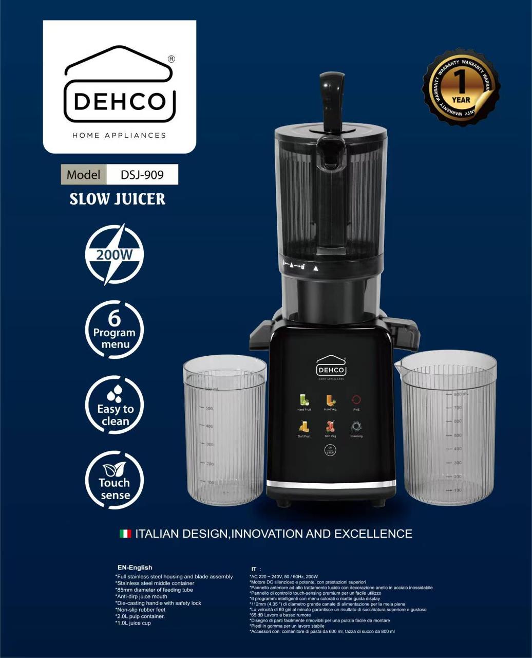 عصارهگیر و آبمیوهگیر DEHCO DSJ-909 یک دستگاه با کیفیت و مقاوم است که با طراحی ایتالیایی، تیغه و بدنه استیل، 6 برنامه هوشمند و تمیز کردن آسان، انتخابی ایدهآل برای خانه و آشپزخانه شما محسوب میشود. این محصول مناسب افرادی است که به دنبال سرعت، کیفیت و راحتی در عصارهگیری و آبگیری هستند. 🍹