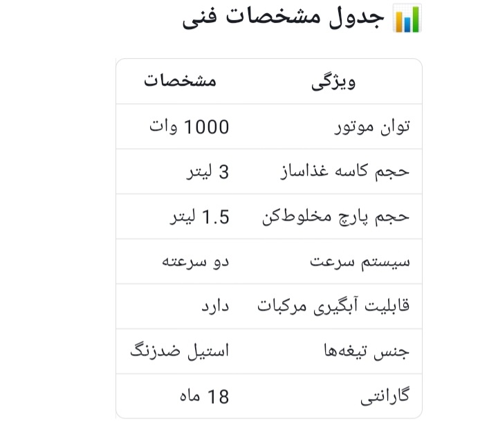 - موتور پر قدرت ۱۰۰۰ وات - مناسب برای سختترین مواد غذایی