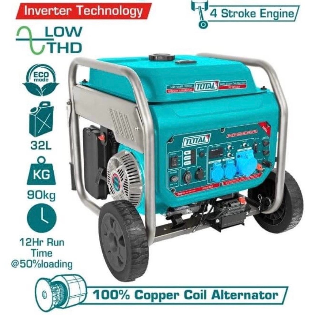 موتور برق بنزینی توتال مدل TP3120001CEP یکی از قدرتمندترین ژنراتورهای خانگی و صنعتی است که با توان خروجی ۱۲ کیلووات و موتور ۲۱ اسب بخار V Twin Cylinder طراحی شده است. این دستگاه مجهز به تابلو ATS میباشد که در زمان قطع برق شهری به صورت خودکار وارد مدار شده و برق اضطراری را تأمین میکند. همچنین قابلیت ریموت استارت و One Push Start با باتری باعث سهولت در راهاندازی دستگاه میشود.