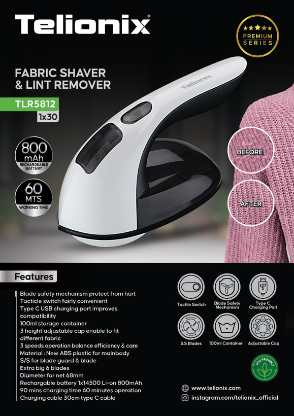 با سه حالت تنظیم ارتفاع مناسب برای انواع پارچهها و سه سرعت عملکرد برای تعادل بین راندمان و مراقبت از لباس، این دستگاه انتخابی حرفهای برای نگهداری لباسها است. تیغههای استیل ضد زنگ و توری محافظ ۶۸ میلیمتری، دوام و ایمنی بالایی فراهم میکنند.
