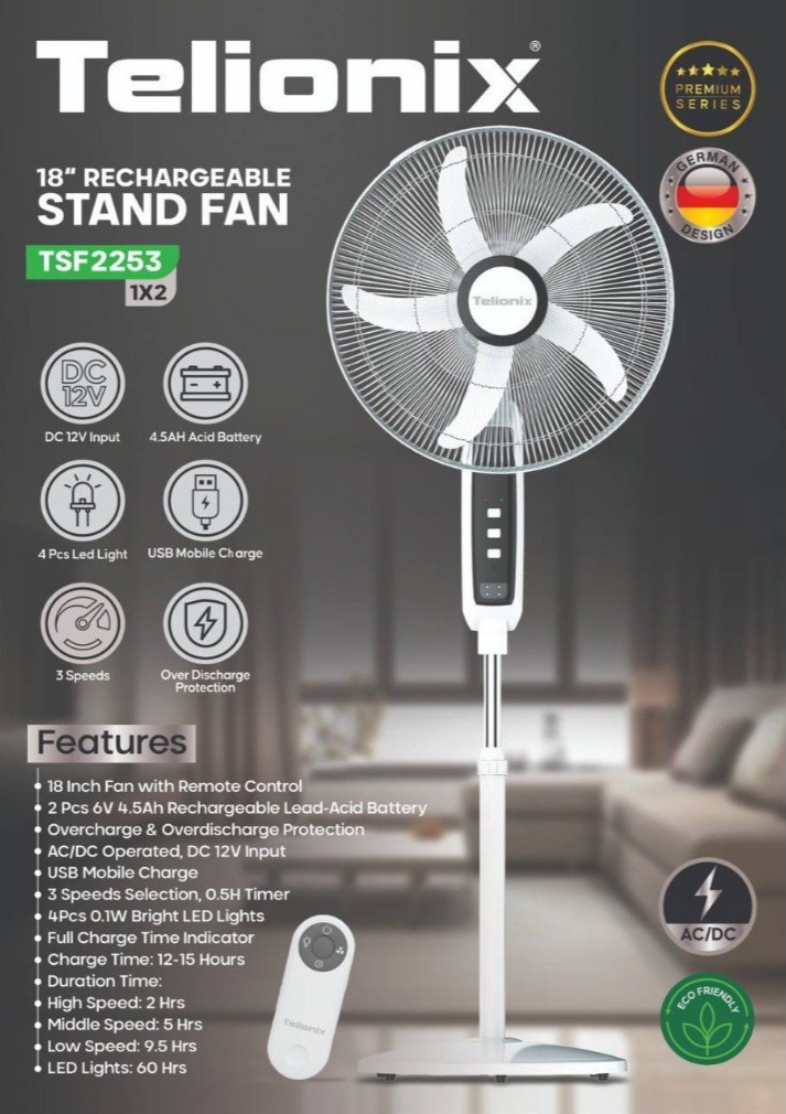 پنکه شارژی 18 اینچی تلیونیکس مدل TSF-2253 - خرید با بهترین قیمت و بالاترین کیفیت